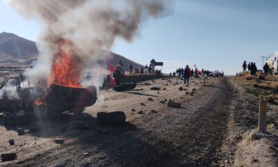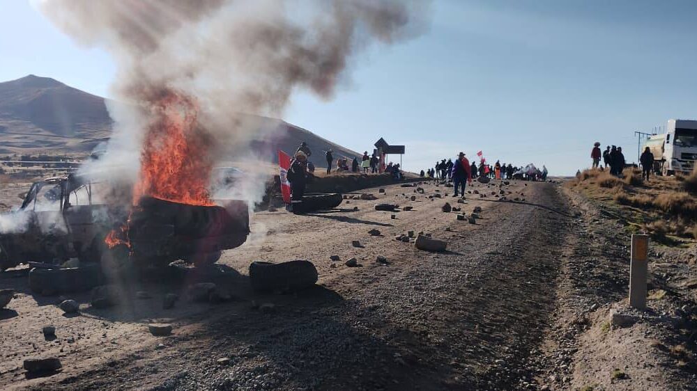 Pobladores del distrito de Chamaca, provincia de Chumbivilcas, bloquean el corredor mineroutilizado por vehículos de la empresa minera “Las Bambas” en exigencia de recursos paraproyectos de...