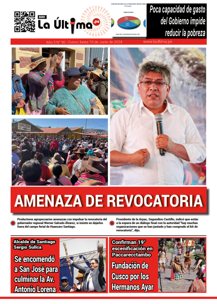 Productores agropecuarios amenazan con impulsar la revocatoria del gobernador regional Werner Salcedo Álvarez, si insiste en dejarlos fuera del campo ferial de Huancaro Santiago.
