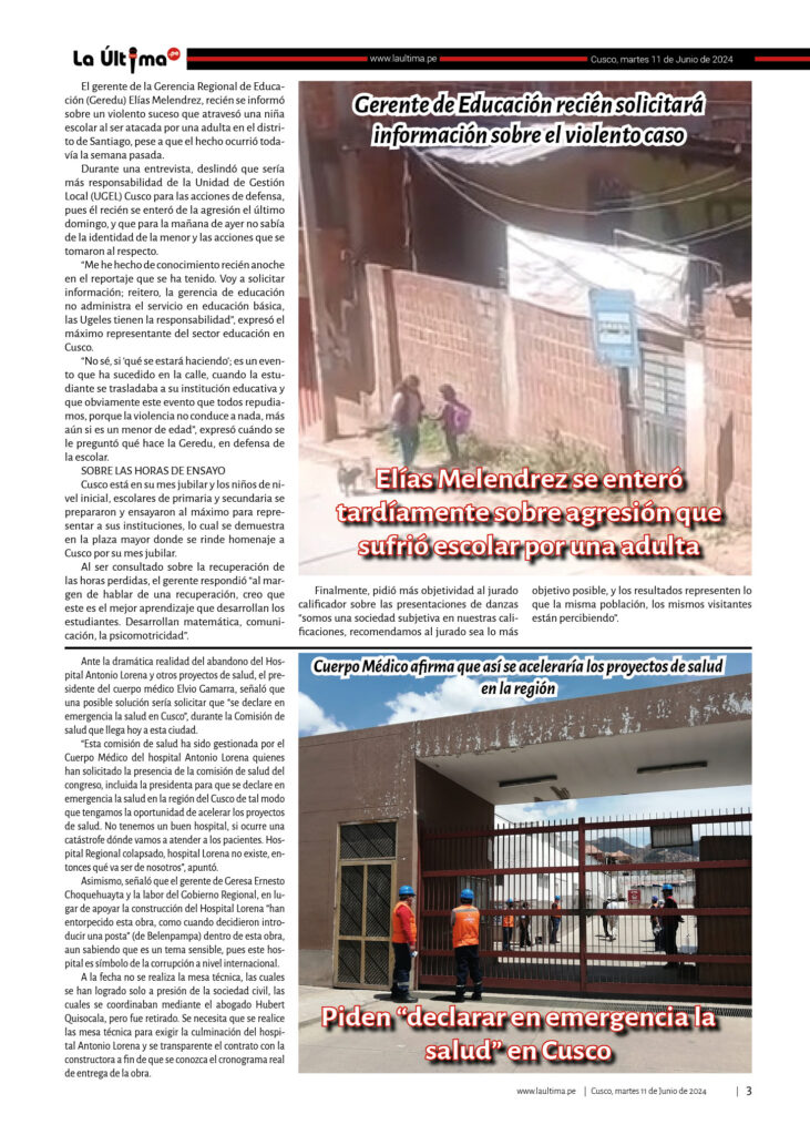 Elías Melendrez recién solicitará información sobre escolar agredida por adulta