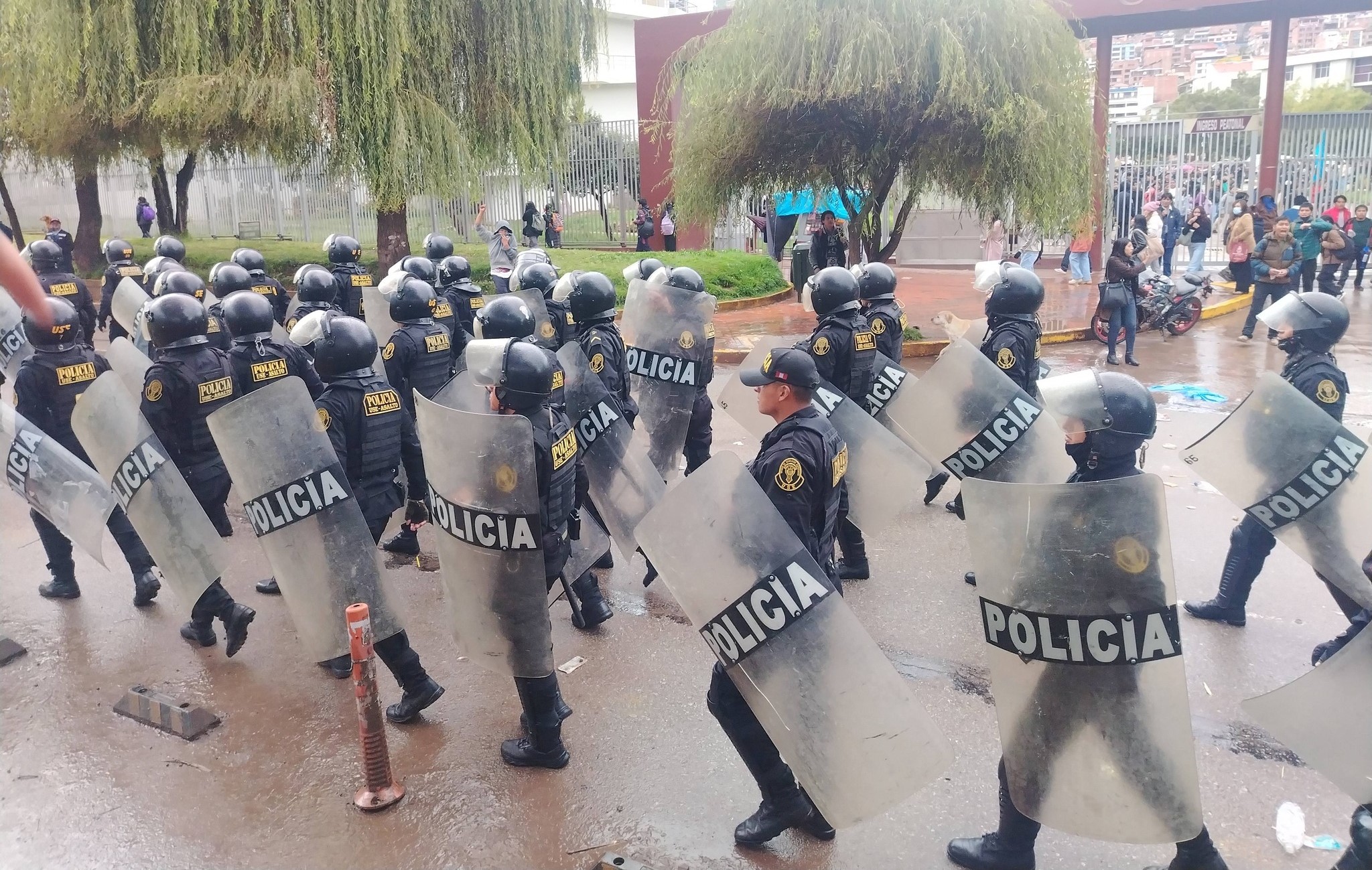 El jefe policial detalló que, si bien la marcha se desarrolló inicialmente sin mayores incidentes, salvo por la afectación al libre tránsito, la situación se tornó tensa cuando los manifestantes retornaron al frontis de la Universidad Nacional de San Antonio Abad del Cusco (Unsaac). Según indicó, en ese punto los estudiantes intentaron introducir buses de transporte público al campus universitario y con pasajeros.