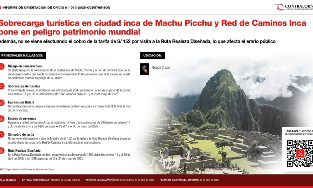La conservación de la ciudad inca de Machu Picchu (llaqta) y la Red de Caminos Inca están en peligro debido a la sobrecarga turística que afecta...