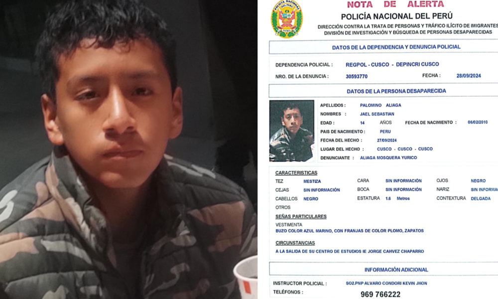 Padres, familiares, amigos, compañeros de estudios y amigos intentan ubicar a un adolescente, reportado como desaparecido en la División de Investigación Criminal (Divincri), desde el último...