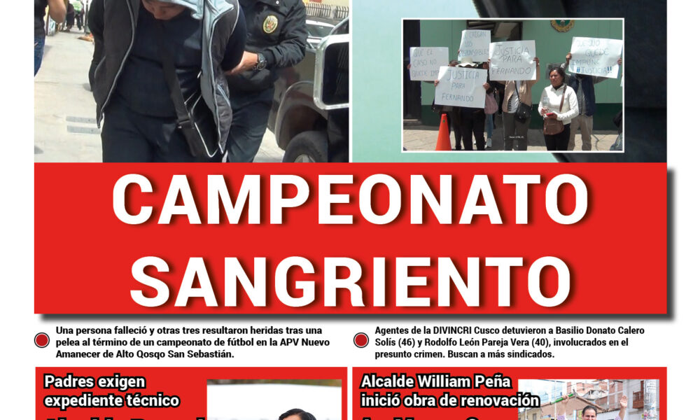 La inseguridad ciudadana en Cusco cobró una nueva víctima, se trata del joven ingeniero ambiental Jean Pierre Villavicencio Miranda, quien fue hallado sin vida el último...
