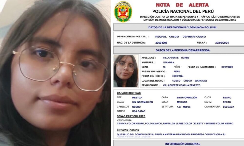 Una escolar es buscada por la policía de la División de Investigación Criminal (Divincri) y sus padres, luego que abandonara su casa y se dirigiera a...