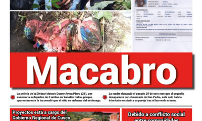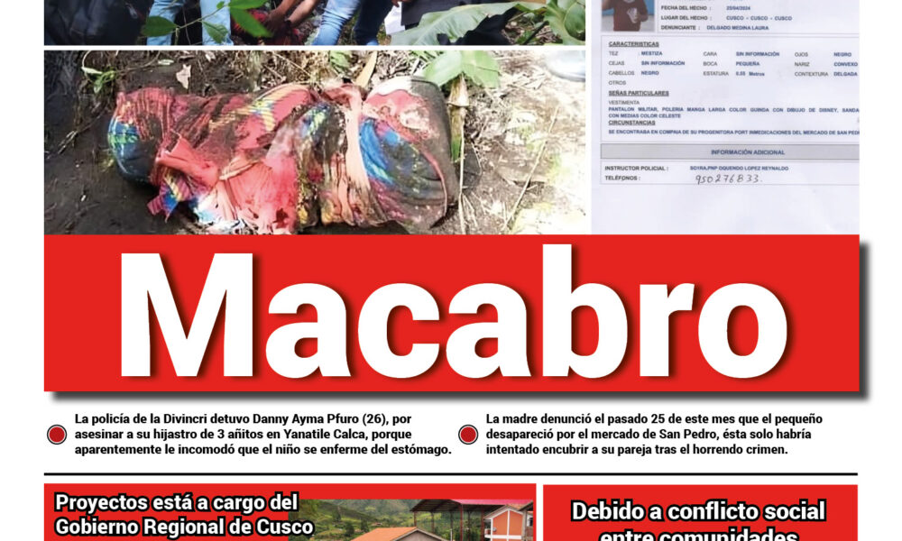 La policía de la División de Investigación Criminal (Divincri) Cusco, mantiene detenido a Danny Ayma Pfuro (26), acusado de haber matado a su hijastro de tan...