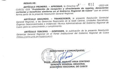 A la fecha, ningún gerente regional u otra autoridad ha registrado la entrega de presentes que superen el 3% de una UIT, es decir, S/. 154.00,...