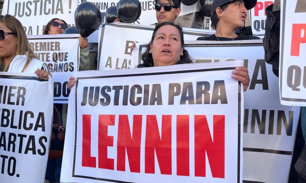 Familiares de Lenín Quenaya Peña (21), joven que fue brutalmente golpeado al interior de una discoteca y luego en la plaza mayor de la ciudad del...