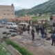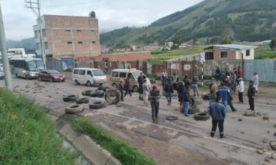 La vía Cusco-Arequipa, a la altura del Puente Arturo en la ciudad de Sicuani, capital de la provincia de Canchis, está bloqueada con piedras, llantas y...